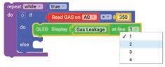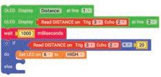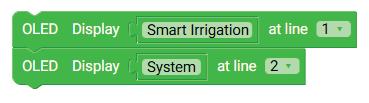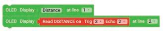 1. Drag two OLED Display blocks from the OUTPUT category and drop them to the workspace. The blocks are set to line ‘1’ by default.
