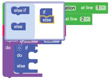 4. Click on the settings icon of the if block. A pop-up box appears. Select the else block and drop it below the if block in the pop-up box.