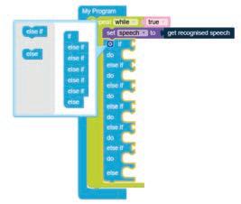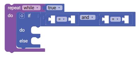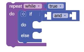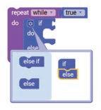 6. Drag the if block from the LOGIC category and drop it inside the repeat while block.