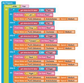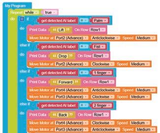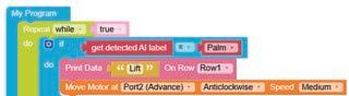 13. Drag the Set MOTOR on block from the OUTPUT category and drop it in the do part of the if block. Select ‘6’ from the drop-down of the block.