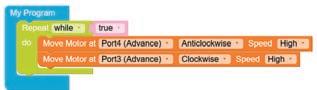 • Configure the motor at Port3 as clockwise by selecting the Clockwise option from the drop-down menu