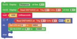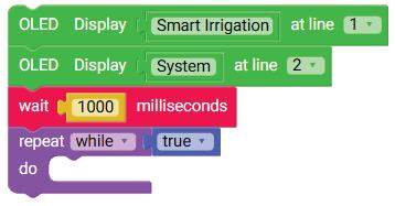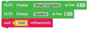 3. Drag the wait milliseconds block from the TIME category and drop it below the second OLED Display block. This block is set to ‘1000’ milliseconds (ms) by default.