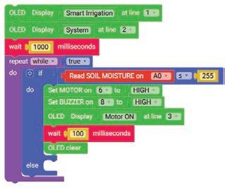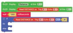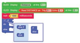 25. Drag the wait milliseconds block from the TIME category and drop it below the OLED Display block. Set the time to ‘100’ milliseconds (ms).