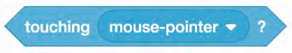 5. The “switch costume to” block will change the costume of the sprite to “watermelon-c” when it touches the given colour.