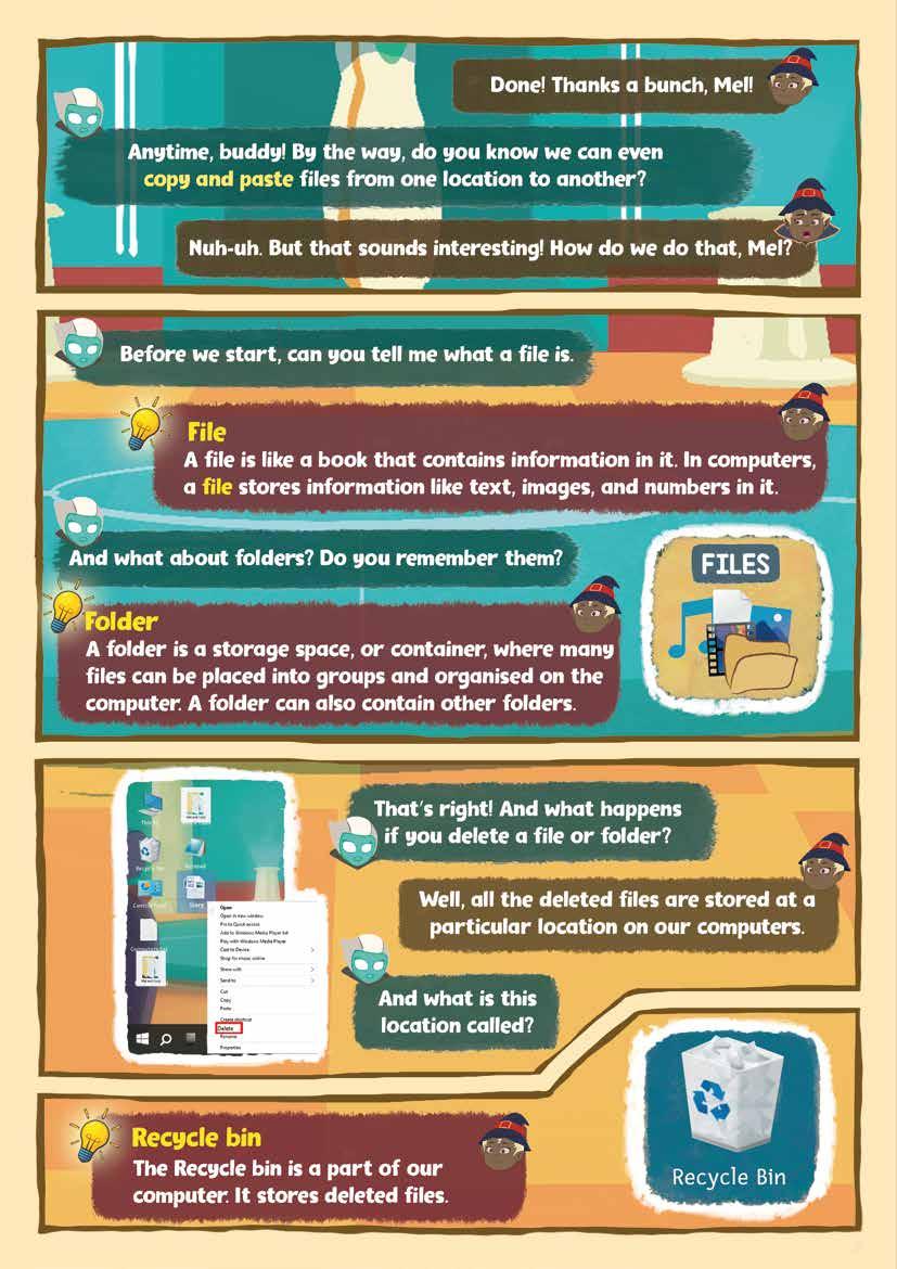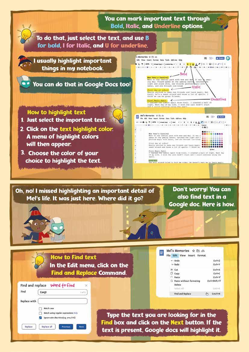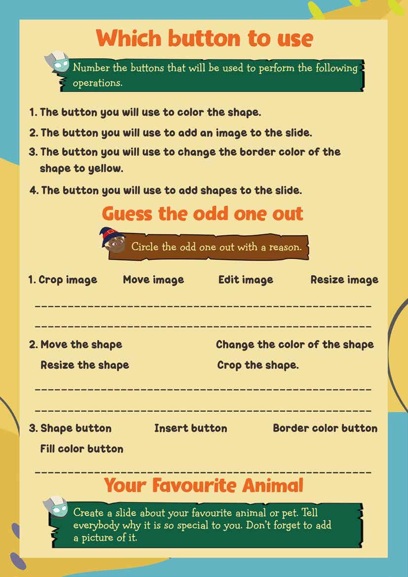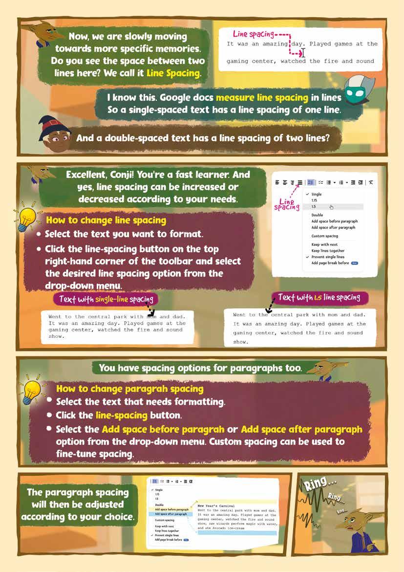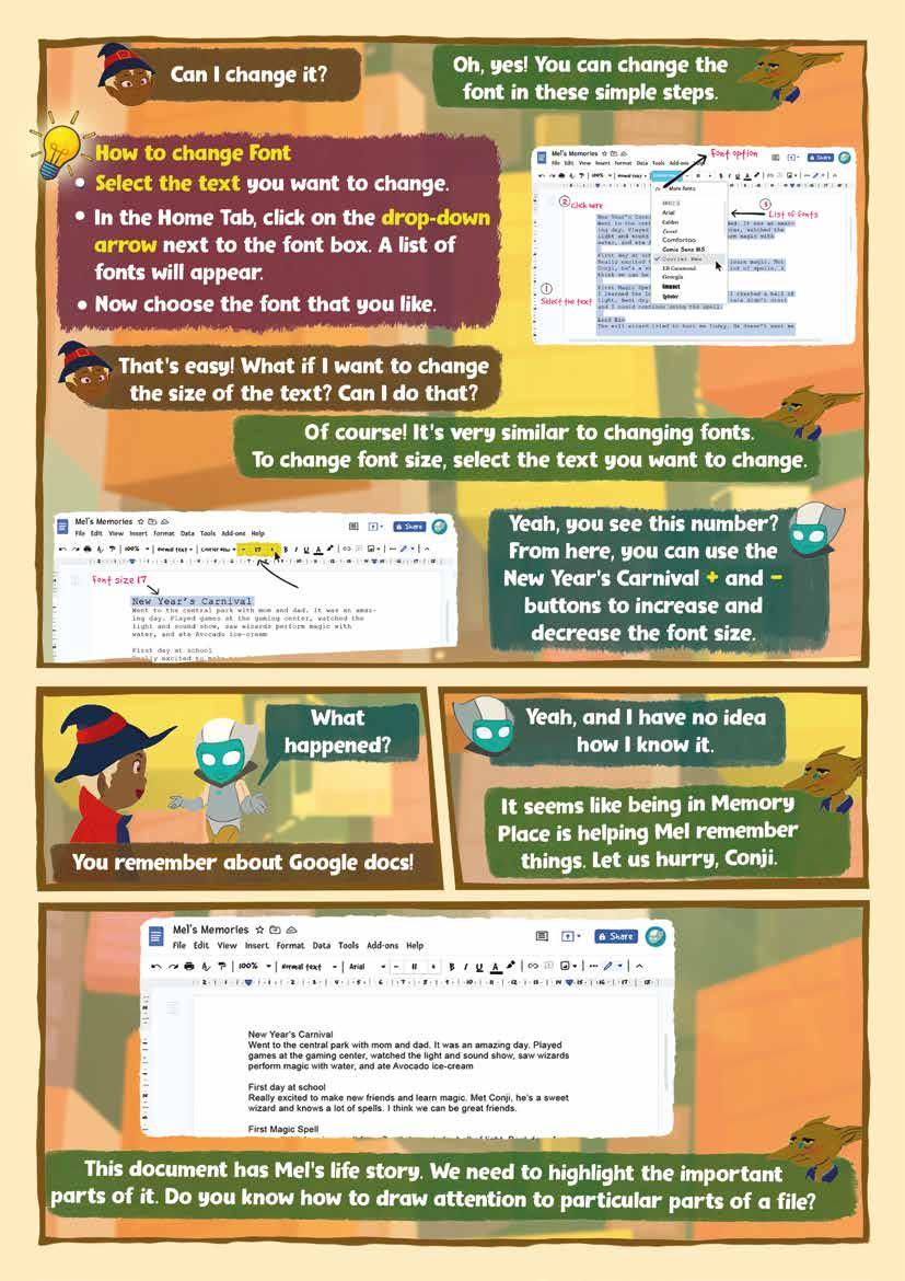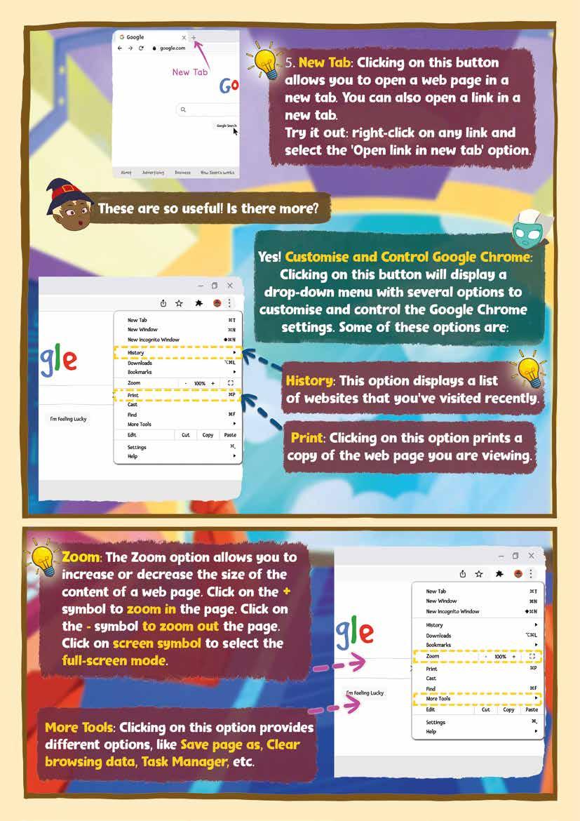 06 Chapter Google Slides - Introduction - Slides - Add, Edit & Organize - Themes - Tools Menu - Adding Text - Add Images - Edit Images - Resize Tool - Shapes 93 ACTIVITY & HOMEWORK 05 Chapter Google Docs Tools - Fonts - Font Style - Find & Replace - Indents, Tabs, & Line Spacing - Lists & their types - Hyper Link 59 ACTIVITY & HOMEWORK 01 Chapter Computer Memory and Storage - Computer memory and Binary - Bits, Bytes and memory size - RAM/ROM, Hard Disk - CD, DVD, Flash Drive, Memory Card 01 ACTIVITY & HOMEWORK 03 Chapter 04 Chapter - Files & folders - Cut, copy & paste files - Keyboard shortcuts - cut, copy & paste - Deleting files - Recycle bin & how to restore files Internet - Web Browser - What is Internet? - History and Uses of the Internet - WWW, Web Browser - How does the Internet work - Search engines Features of File Management 30 46 02 Chapter GUI Operating System - Desktop Management - Desktop, Taskbar & its uses - Search bar & Cortana - Setting Date & Time - Quick launch - Shortcut icons & creating desktop shortcuts 13 ACTIVITY & HOMEWORK ACTIVITY & HOMEWORK ACTIVITY & HOMEWORK