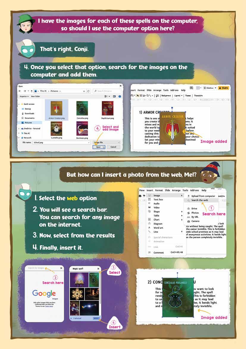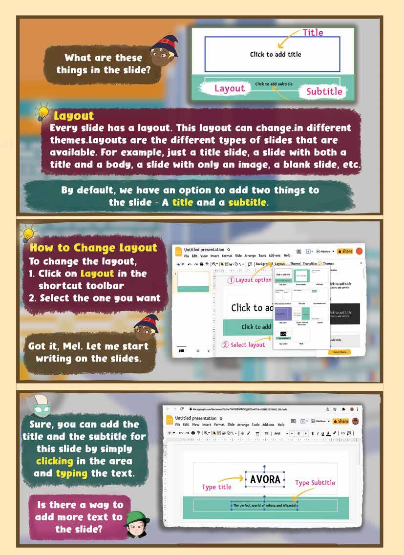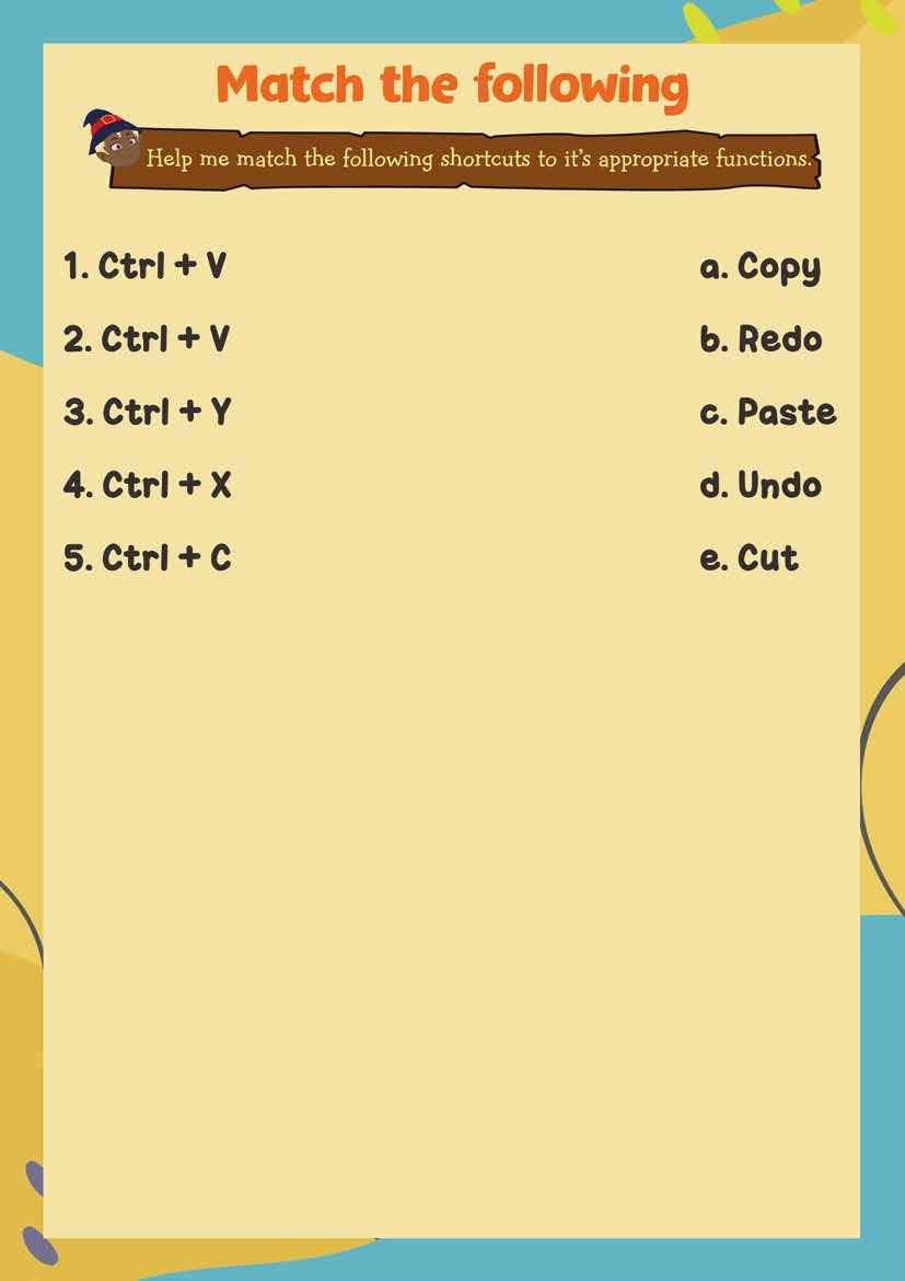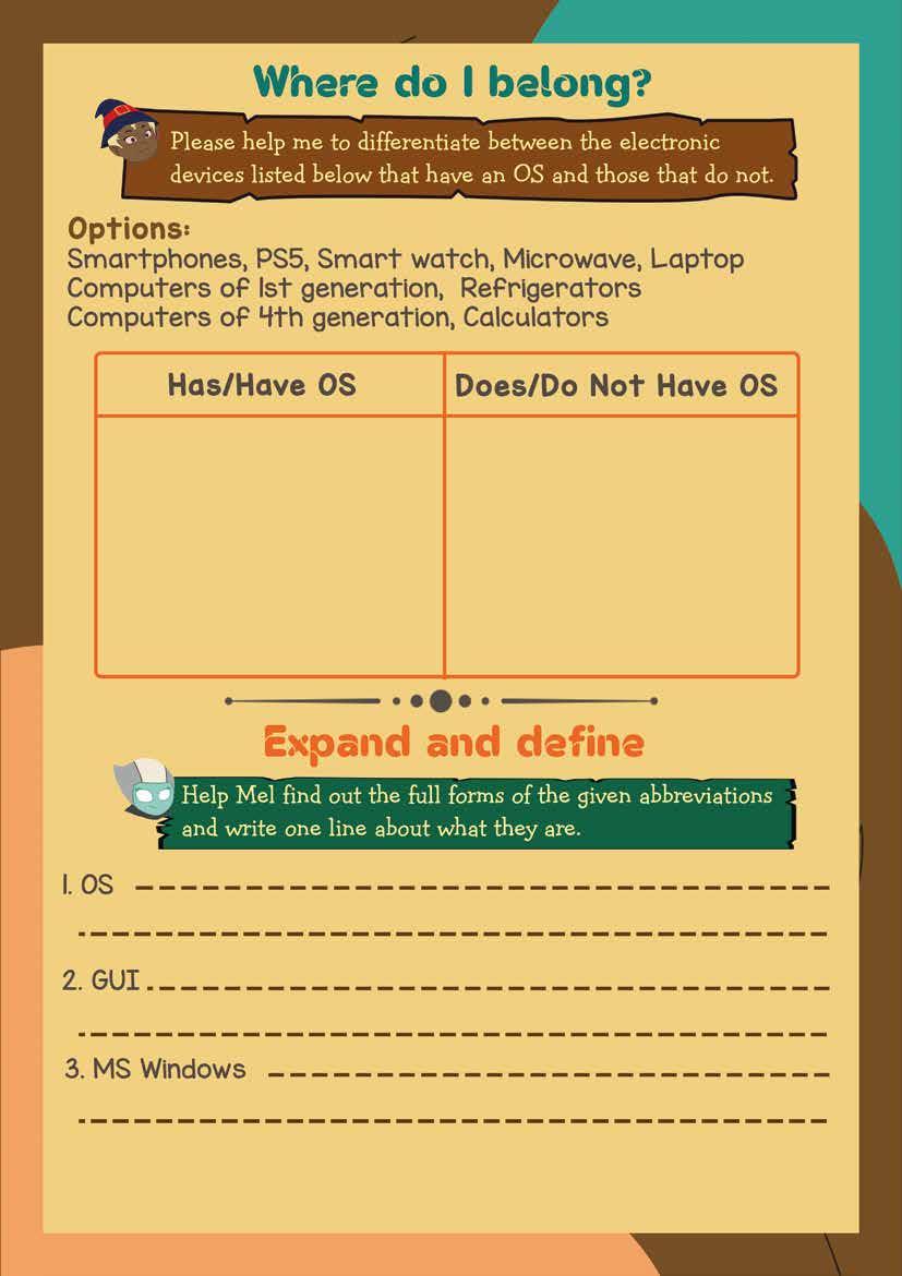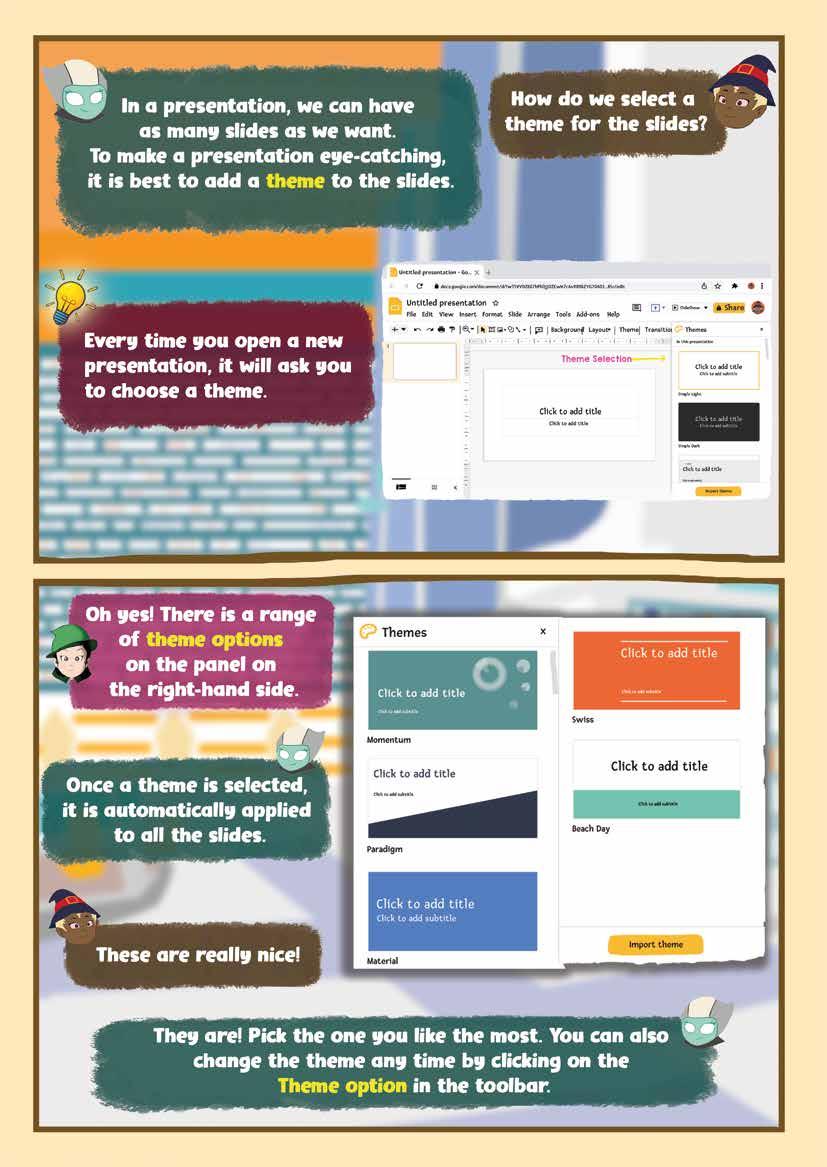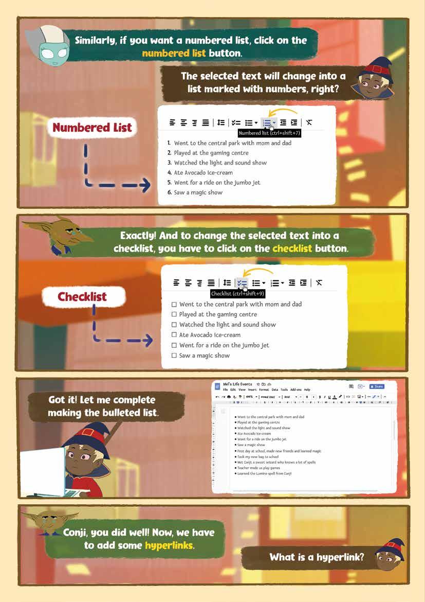 06 Chapter Google Slides - Introduction - Slides - Add, Edit & Organize - Themes - Tools Menu - Adding Text - Add Images - Edit Images - Resize Tool - Shapes 93 ACTIVITY & HOMEWORK 05 Chapter Google Docs Tools - Fonts - Font Style - Find & Replace - Indents, Tabs, & Line Spacing - Lists & their types - Hyper Link 59 ACTIVITY & HOMEWORK 01 Chapter Computer Memory and Storage - Computer memory and Binary - Bits, Bytes and memory size - RAM/ROM, Hard Disk - CD, DVD, Flash Drive, Memory Card 01 ACTIVITY & HOMEWORK 03 Chapter 04 Chapter - Files & folders - Cut, copy & paste files - Keyboard shortcuts - cut, copy & paste - Deleting files - Recycle bin & how to restore files Internet - Web Browser - What is Internet? - History and Uses of the Internet - WWW, Web Browser - How does the Internet work - Search engines Features of File Management 30 46 02 Chapter GUI Operating System - Desktop Management - Desktop, Taskbar & its uses - Search bar & Cortana - Setting Date & Time - Quick launch - Shortcut icons & creating desktop shortcuts 13 ACTIVITY & HOMEWORK ACTIVITY & HOMEWORK ACTIVITY & HOMEWORK