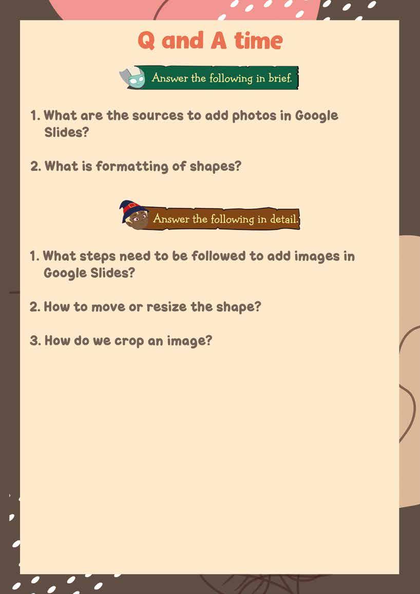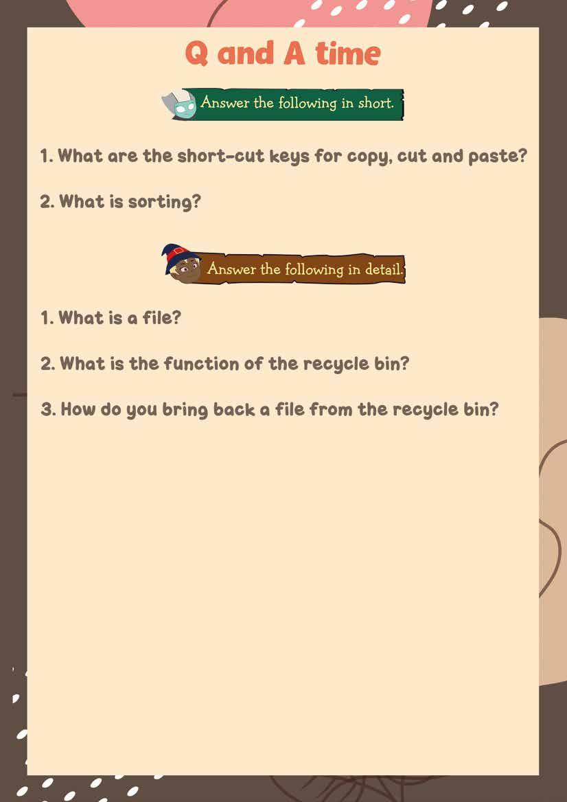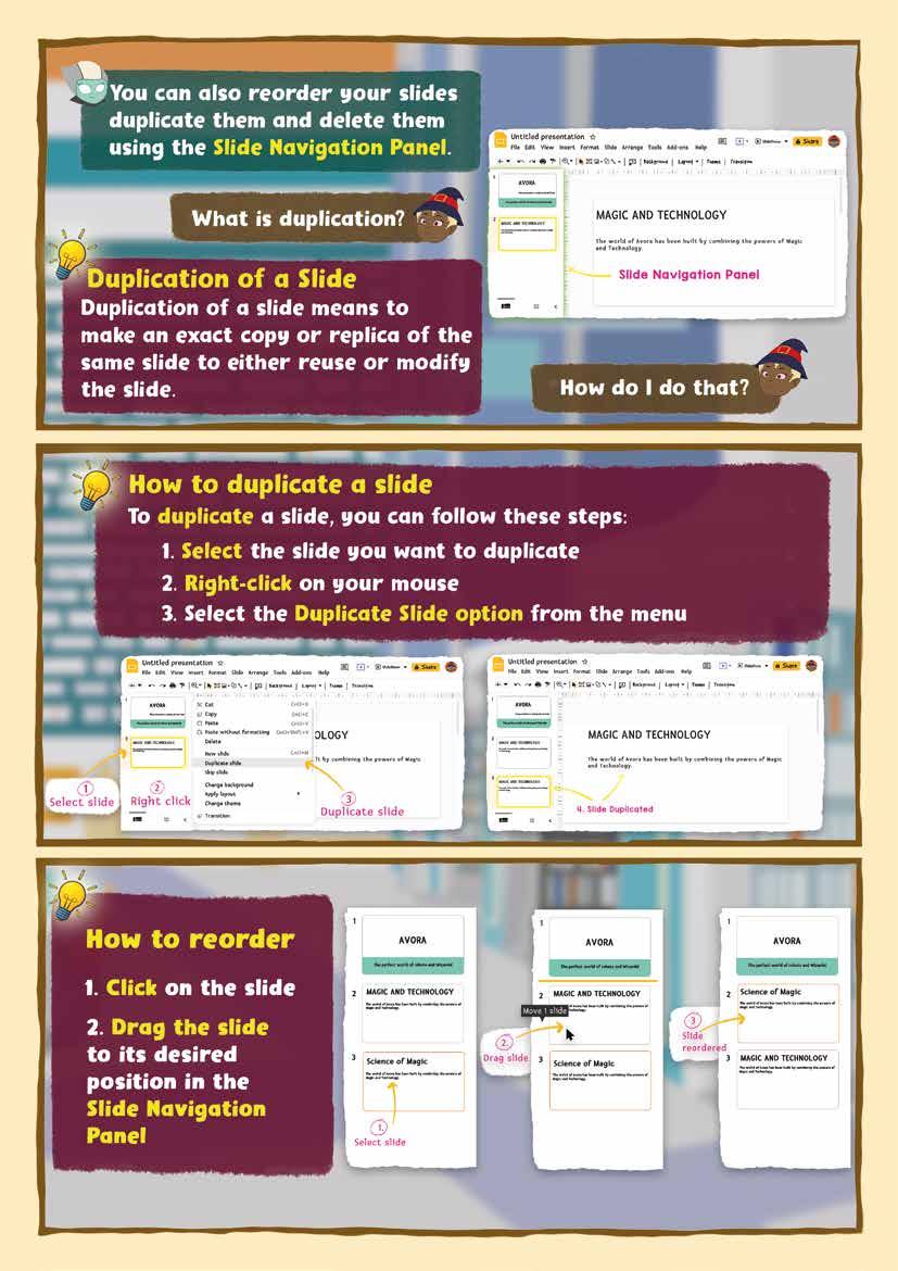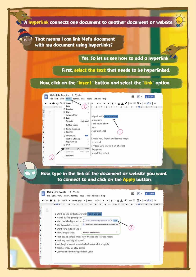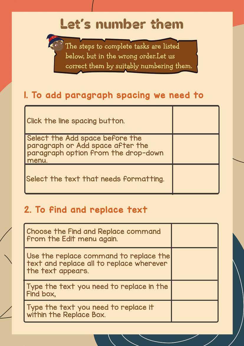 06 Chapter Google Slides - Introduction - Slides - Add, Edit & Organize - Themes - Tools Menu - Adding Text - Add Images - Edit Images - Resize Tool - Shapes 93 ACTIVITY & HOMEWORK 05 Chapter Google Docs Tools - Fonts - Font Style - Find & Replace - Indents, Tabs, & Line Spacing - Lists & their types - Hyper Link 59 ACTIVITY & HOMEWORK 01 Chapter Computer Memory and Storage - Computer memory and Binary - Bits, Bytes and memory size - RAM/ROM, Hard Disk - CD, DVD, Flash Drive, Memory Card 01 ACTIVITY & HOMEWORK 03 Chapter 04 Chapter - Files & folders - Cut, copy & paste files - Keyboard shortcuts - cut, copy & paste - Deleting files - Recycle bin & how to restore files Internet - Web Browser - What is Internet? - History and Uses of the Internet - WWW, Web Browser - How does the Internet work - Search engines Features of File Management 30 46 02 Chapter GUI Operating System - Desktop Management - Desktop, Taskbar & its uses - Search bar & Cortana - Setting Date & Time - Quick launch - Shortcut icons & creating desktop shortcuts 13 ACTIVITY & HOMEWORK ACTIVITY & HOMEWORK ACTIVITY & HOMEWORK