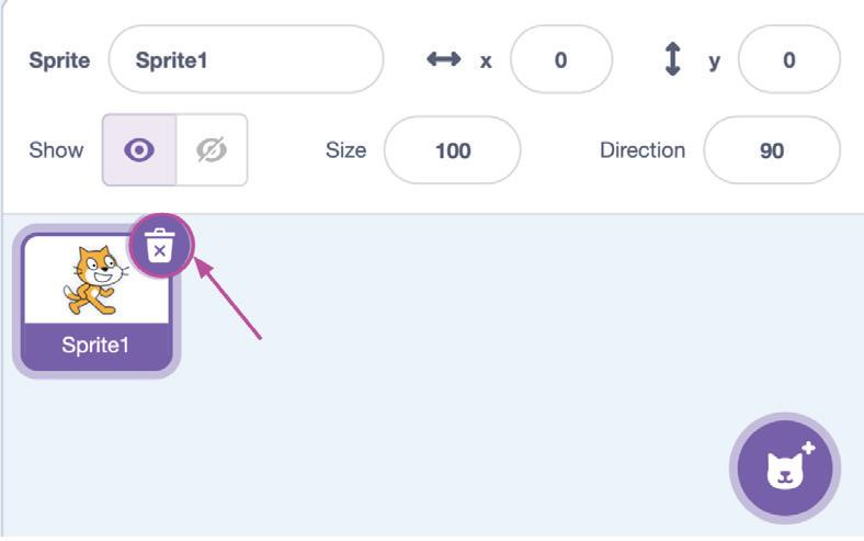 3 Pragati wants to change the default sprite on the stage but forgets the steps to delete a sprite. Help her by writing the steps to do so.