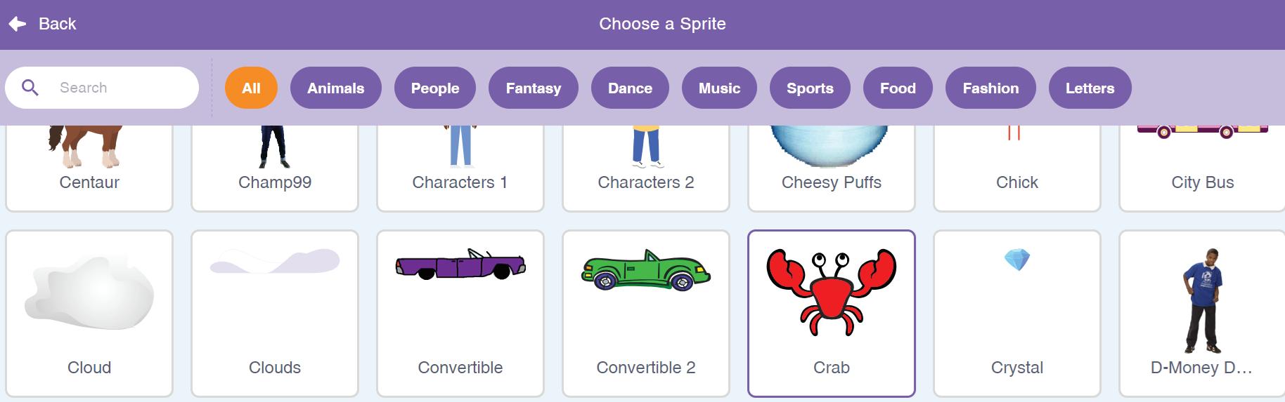 a Motion blocks b Sensing blocks c Sound blocks d Looks blocks