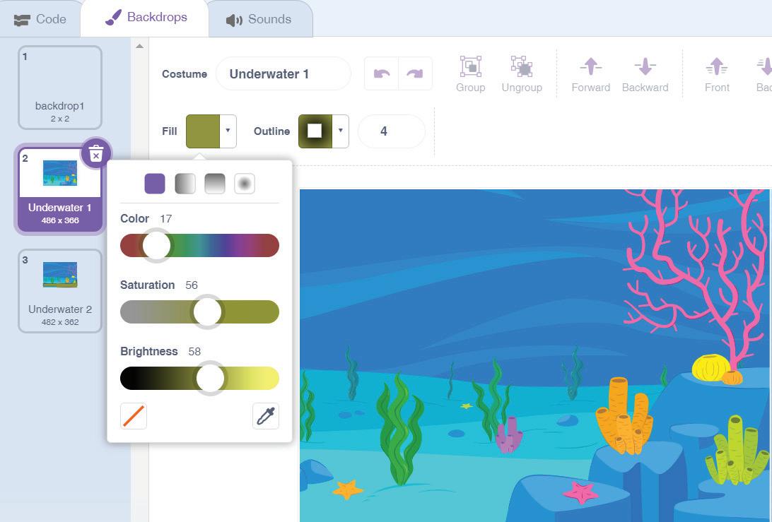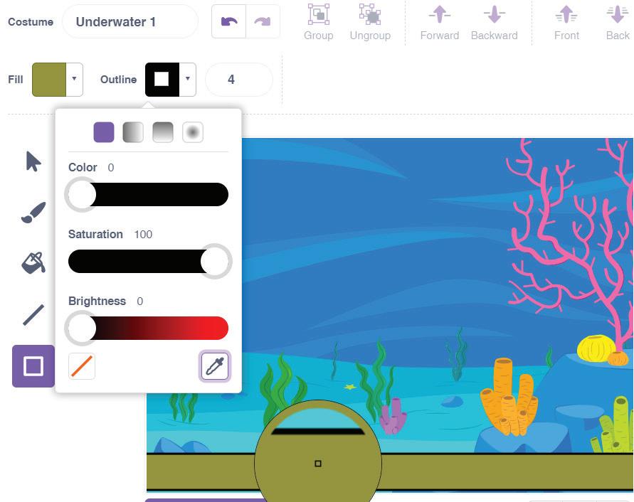 3 Select the color in the touching block and change the colour to that of the sea bed.