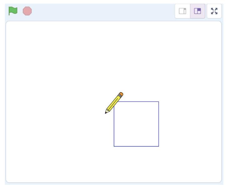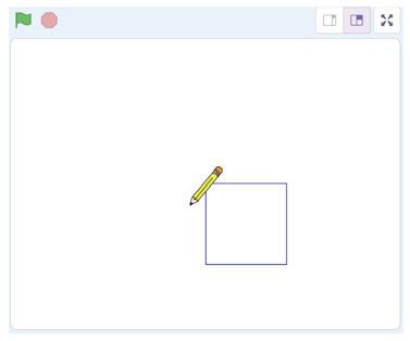The Pencil sprite moves quickly and draws the rectangle. Steps to add a delay of 1 second: