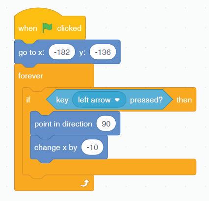 2 Drag the touching mouse-pointer block from the Sensing category to the blank section of the if… then block.