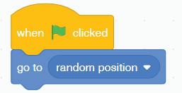 7 Drag the go to random position block from the Motion category and join it under the wait 1 seconds block.