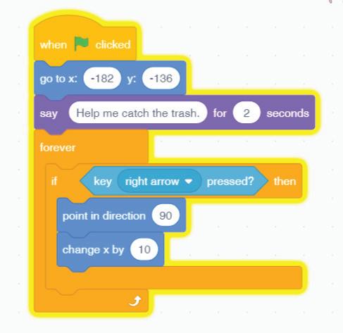 1 Look at the blocks given below. Number them from 1 to 3 in order to make the Trash sprite disappear if it touches the Saviour.