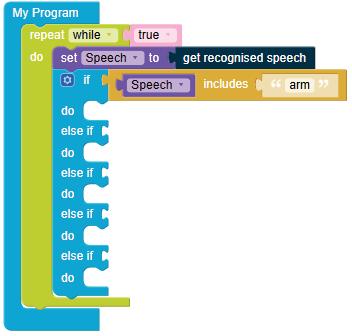 19. Similarly, set actions based on different commands (left, backward, and right) by using the else if blocks. It will allow the user to move in the left, backward, and in the right directions, respectively.