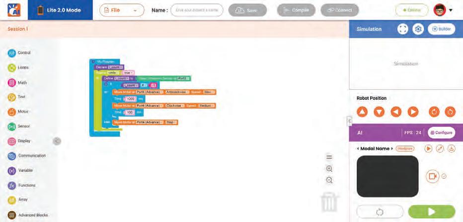 5. Buttons: The buttons help move the bot front, back, left, or right. The buttons also help rotate the bot clockwise and anticlockwise in the virtual arena.