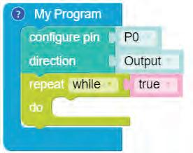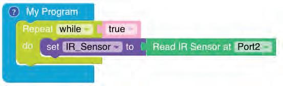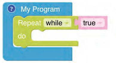 3. Drag the Repeat while block from the Loops category and drop it inside the My Program block to begin the infinite loop. The loop value is set to true by default.
