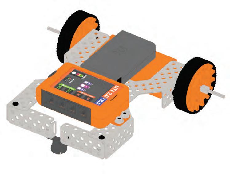 9 Connect the left motor to the "M1" port and connect the right motor to the "M2" port of the Brain using the connecting cables, as shown.