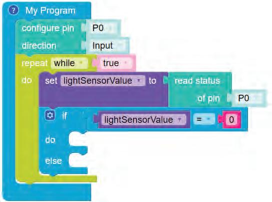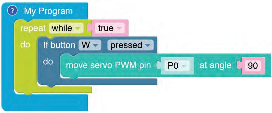 15. Drag the move servo PWM pin block from the Hardware category and drop it in the do part of the if block.