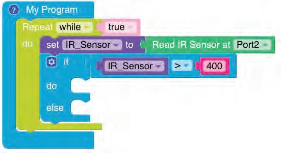 4. Drag the if block from the Control category and place it inside the repeat while block.