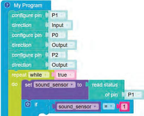 9. Drag the equal operator block from the Control category and attach it to the right of the if block.
