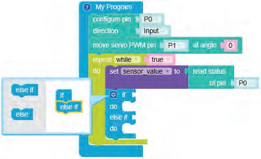 29. A pop-up box appears. Drag the else block and drop it below the if block in the pop-up box. Click on the settings icon again to hide the pop-up box.