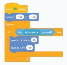 1 Nia is making a Scratch project where she needs to move the dog from left to right. Which block should she use?