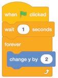 1 Look at the blocks given below and number them from 1 to 4 in order to make the sprite fall when the Go button is pressed.