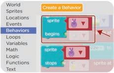3 The ‘sprite stops’ block is found in the Behaviors section.