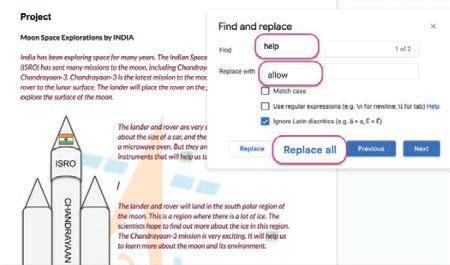 2 Rahul wants to know the use of Find and Replace in Google doc. Explain it to him.