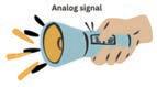 Now think of the fan speed knob, or regulator, on the switchboard. It changes the speed at which the fan spins, instead of just switching it on or off. We can have the fan spin at the fastest speed, reduce it to a slower speed, then much slower, and finally switch it off. We can do more things with the regulator than the switch. That is how analog signal works.