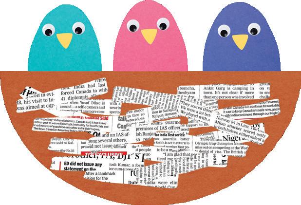 2. Tear small strips from a newspaper page. Stick them on the nest, as shown in the picture.
