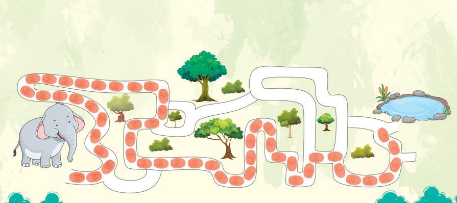 Eddie the elephant is thirsty! Trace the path with a pencil to take it to the pond. Then, make your finger impressions on it with colour of your choice.