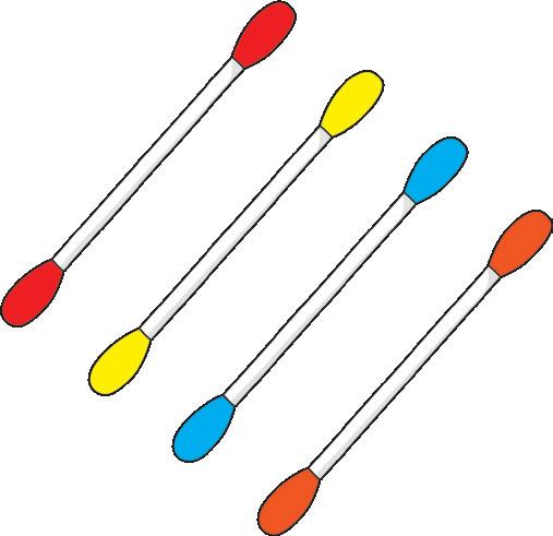 Step 1: Dip the ends of the earbuds in red, yellow, blue and orange colour.