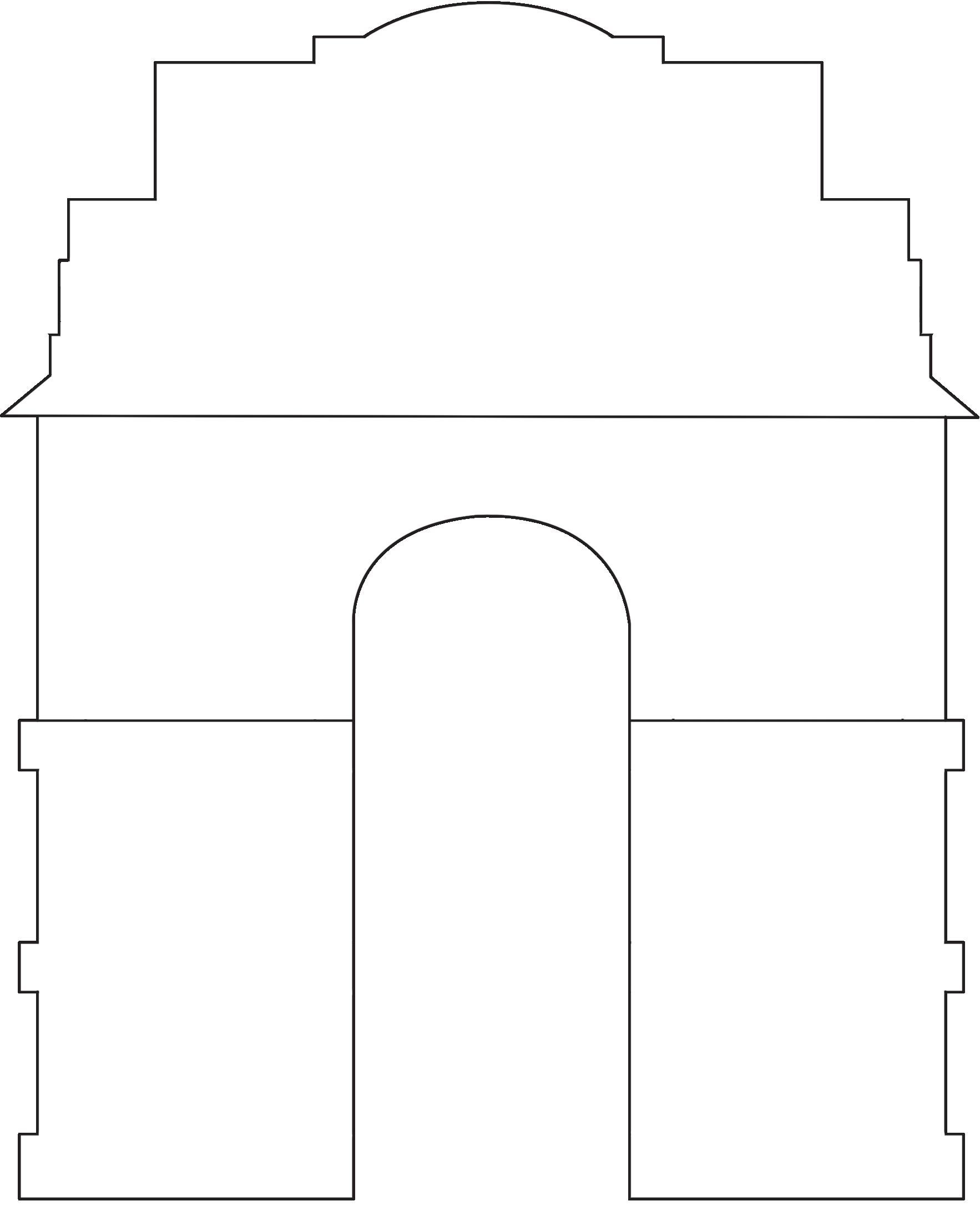 Tear and paste tricolour origami paper inside the picture of the India Gate.