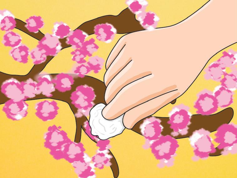 Step 3: Press the cotton ball on the tree to create the spring tree, as shown in the image.