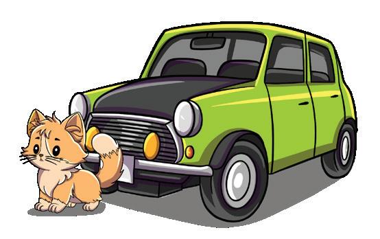 6. The cat is _________ the car.