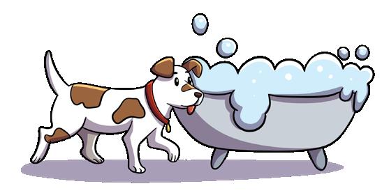 2. The pup is _________ a tub.