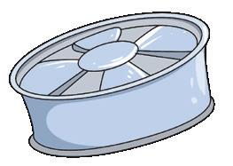 4. The fan is _____ the van.