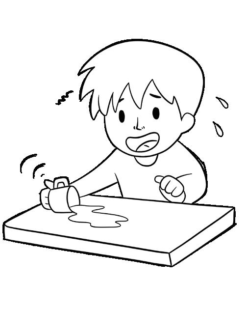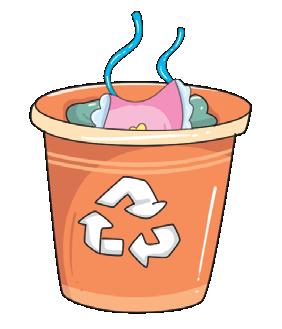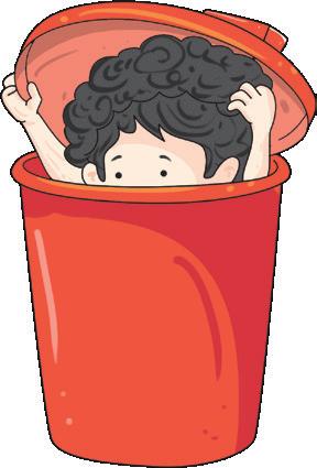 3. The kid is _____ the bin.