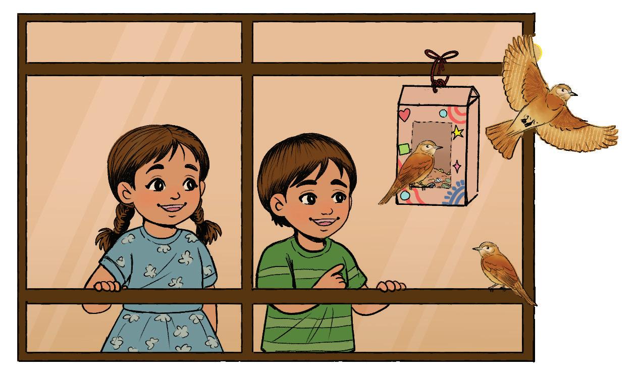 5. Hang the feeder outside the classroom. Watch the birds come to eat the seeds! Try This Now! Make a simple bird using newspaper/old paper and put it near the feeder in the classroom.