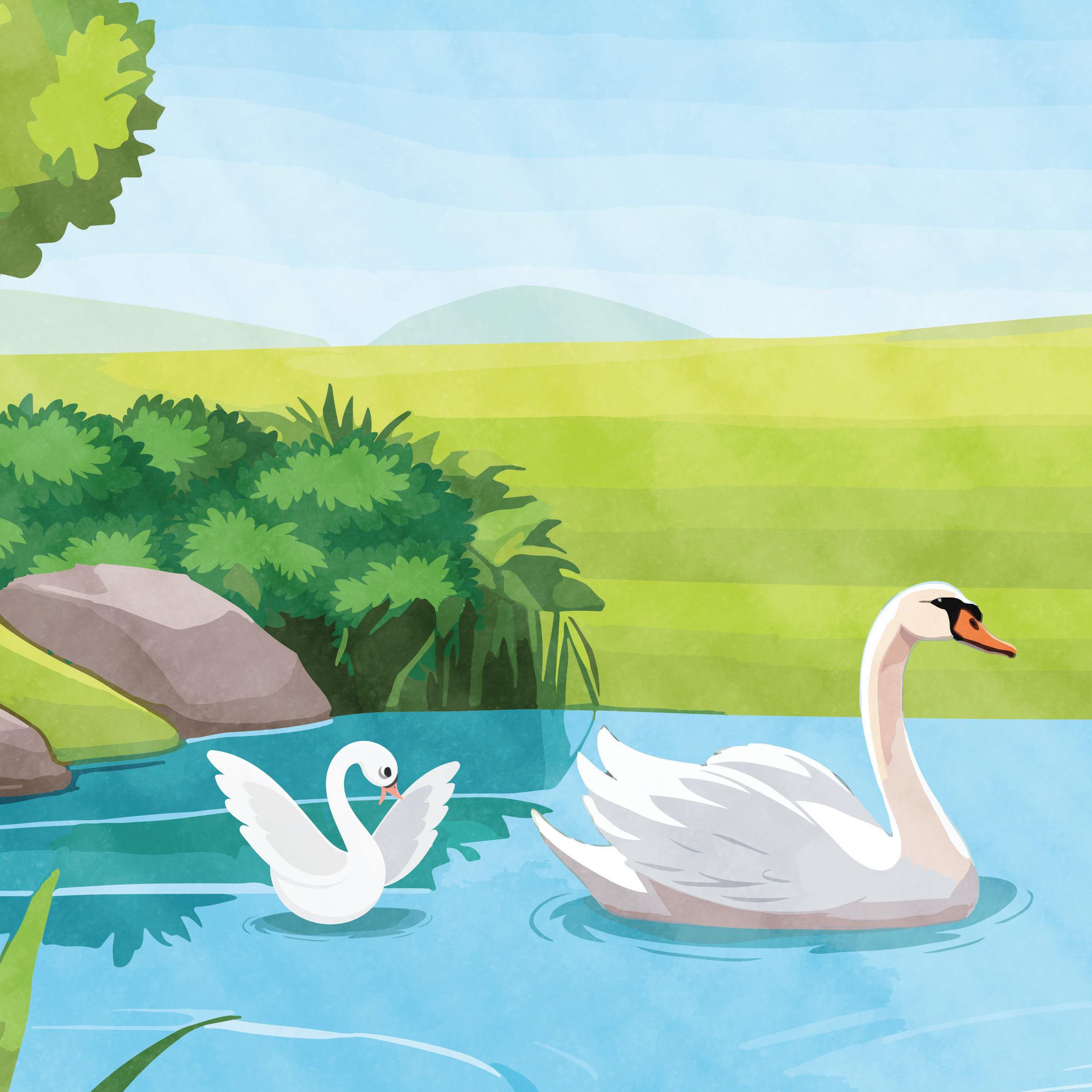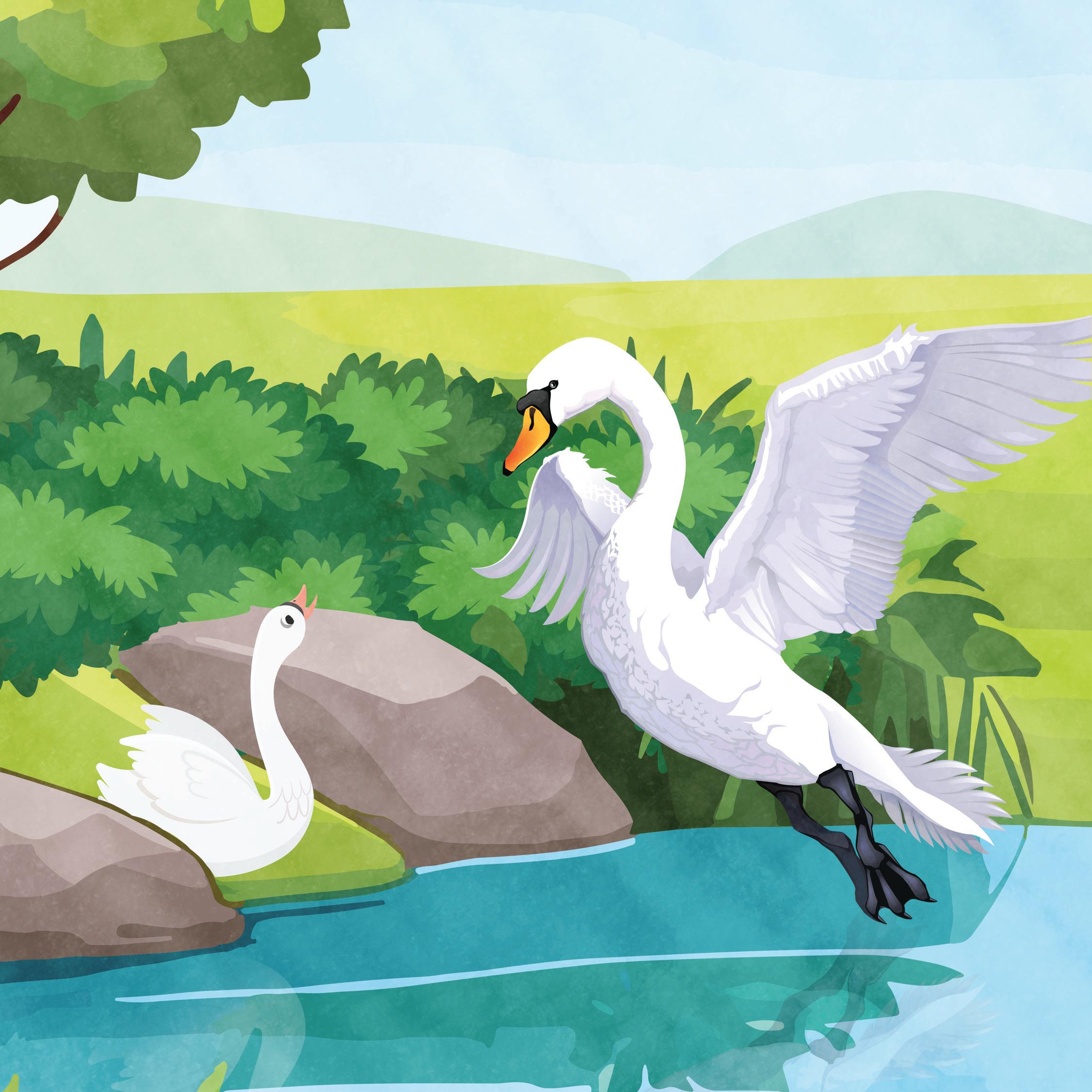 He spread his wings once, twice, three times. He landed in the water. “You just need to try,” said the swan. Soon he was flying, and he and his friend flew away. He was not an ugly duckling. He was a beautiful swan!