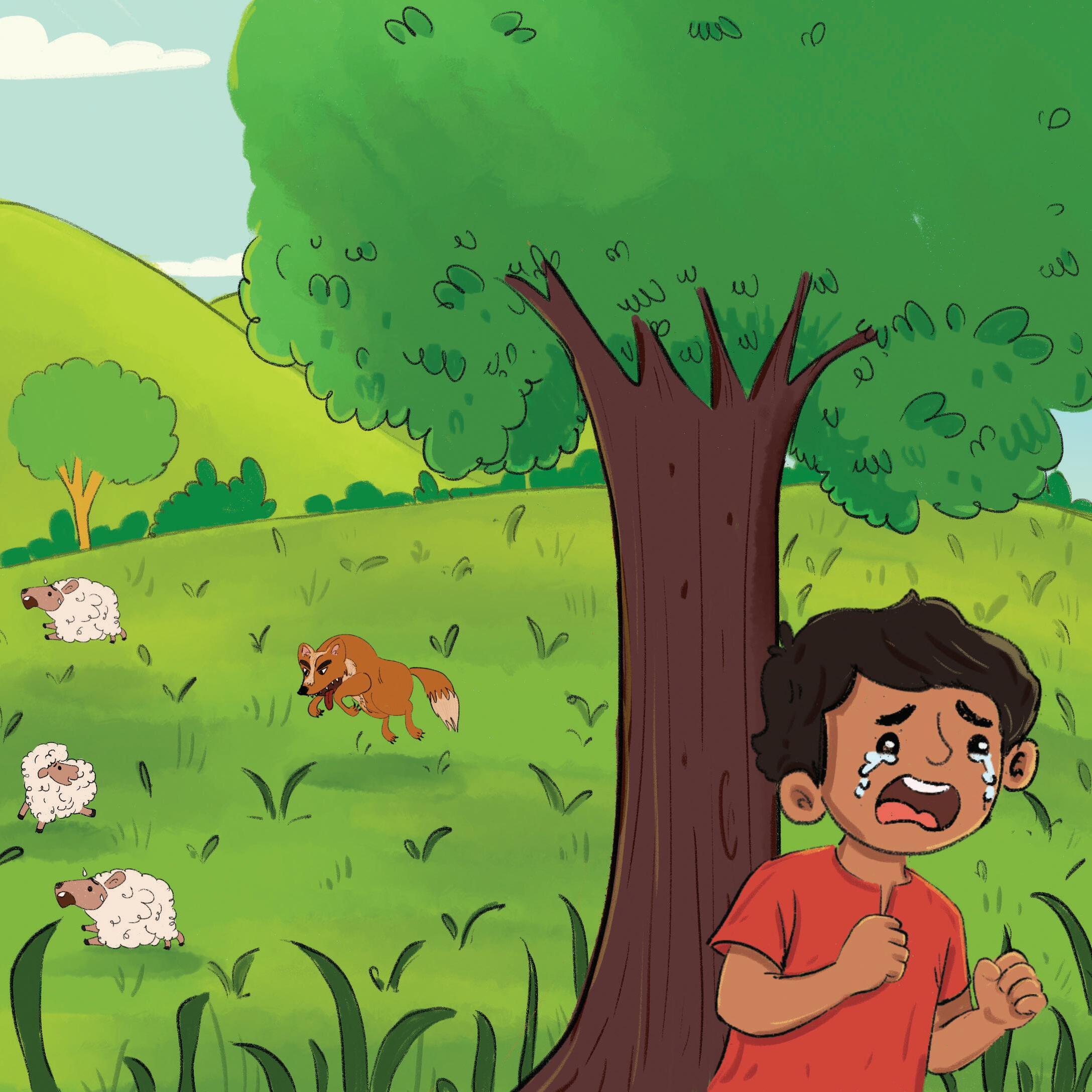 This time, no one came to help. The wolf chased the sheep away. The poor boy cried and cried!