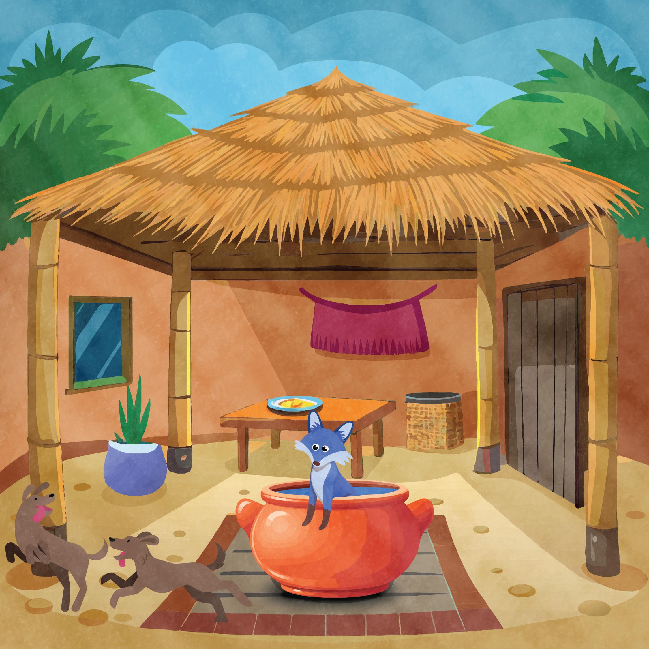 Gopi’s neighbour wanted to know what Gopi’s secret was. He visited Gopi's house. His dog jumped into the pot. Lots of dogs came out of it! They all looked the same.