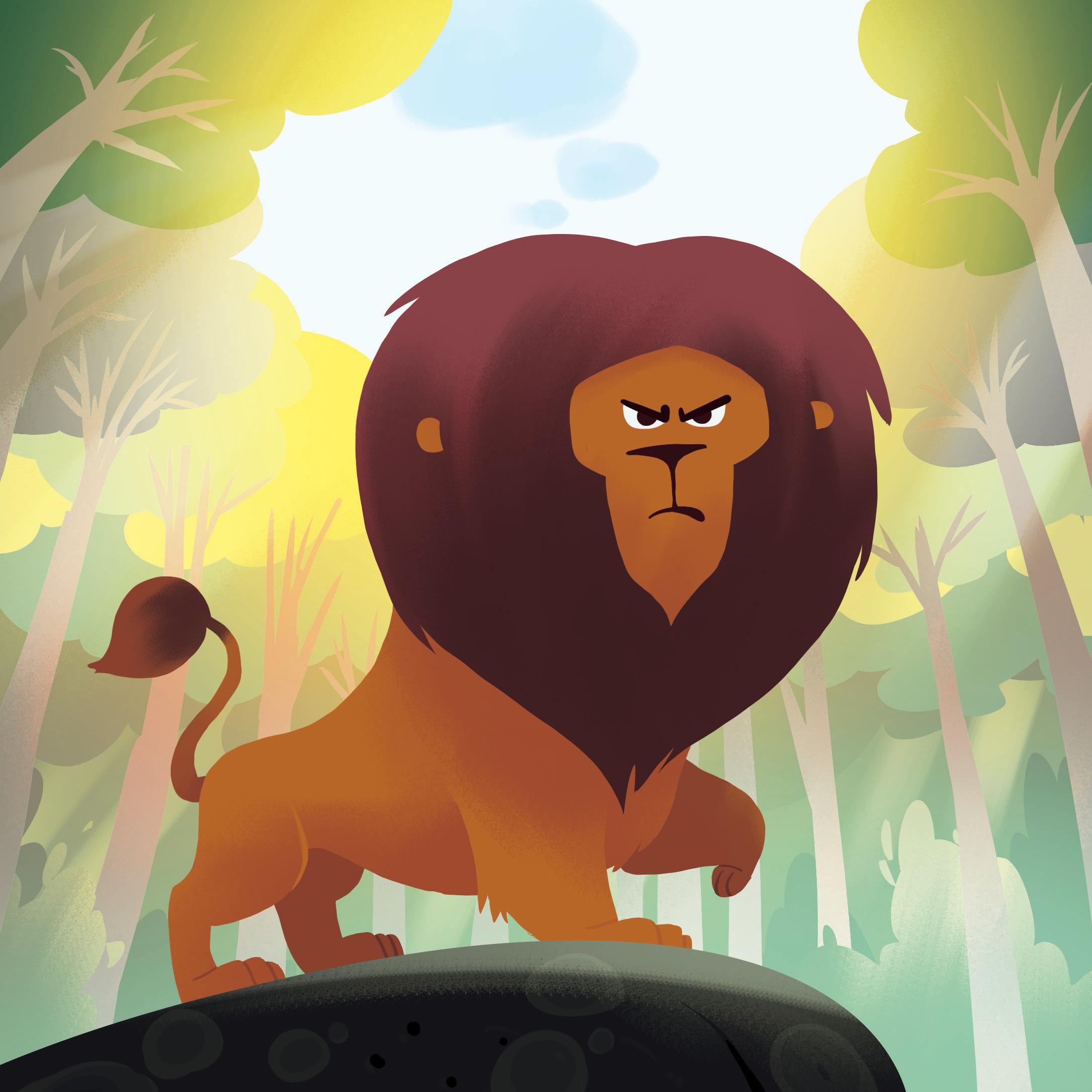 Once upon a time, a big and strong lion lived in the jungle. He would scare the other animals!