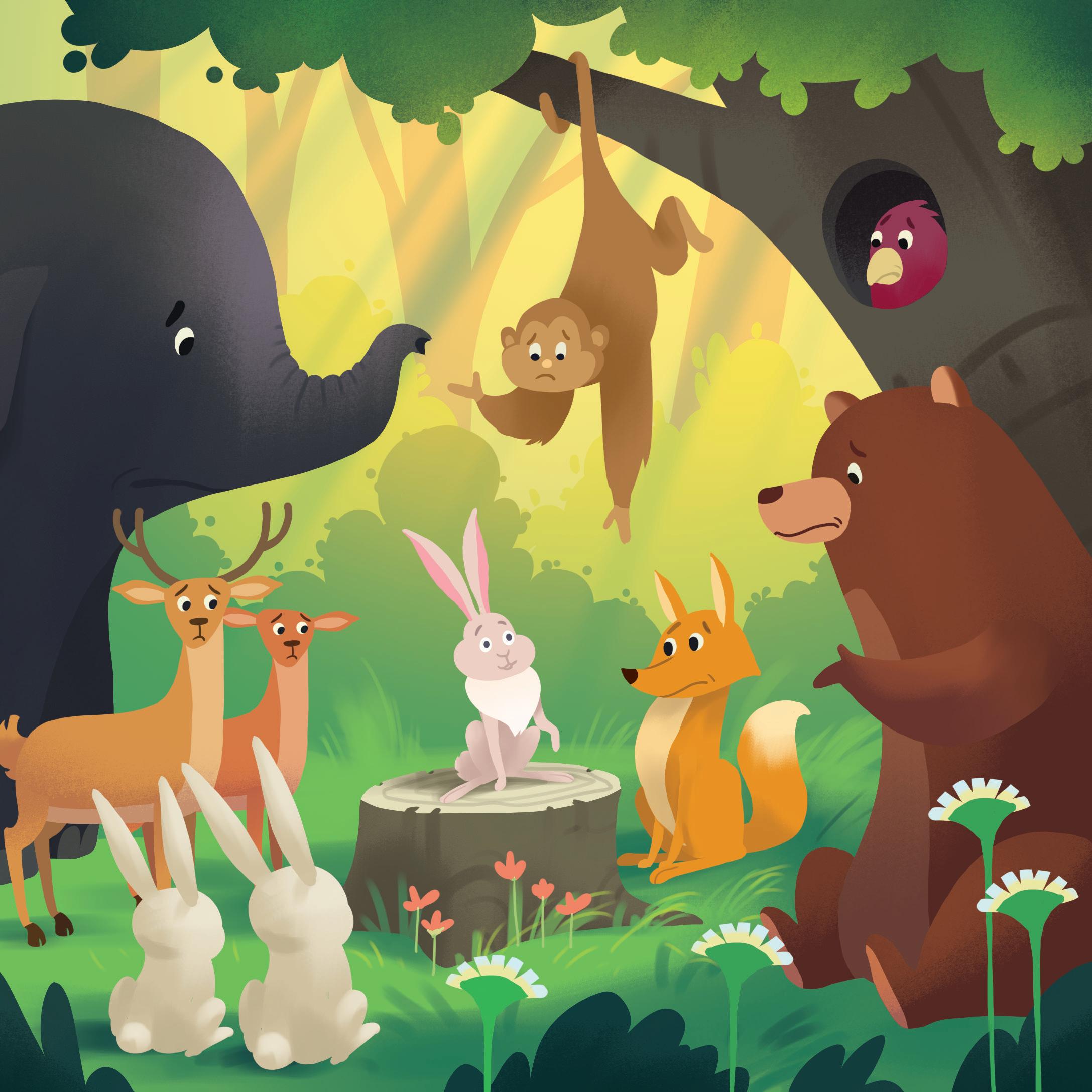 All the other animals were afraid of the lion! So, they spoke to the clever hare.