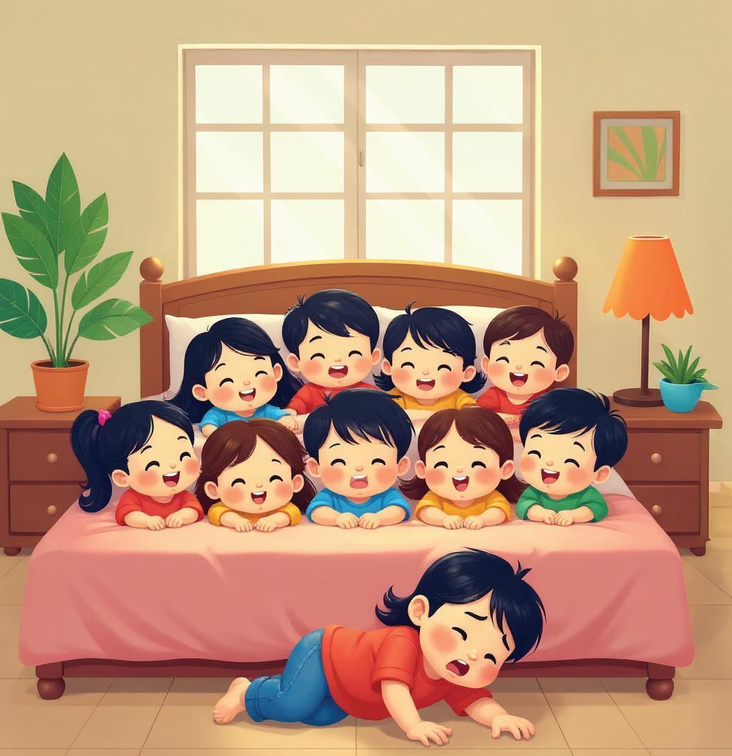 There were nine children in the bed,