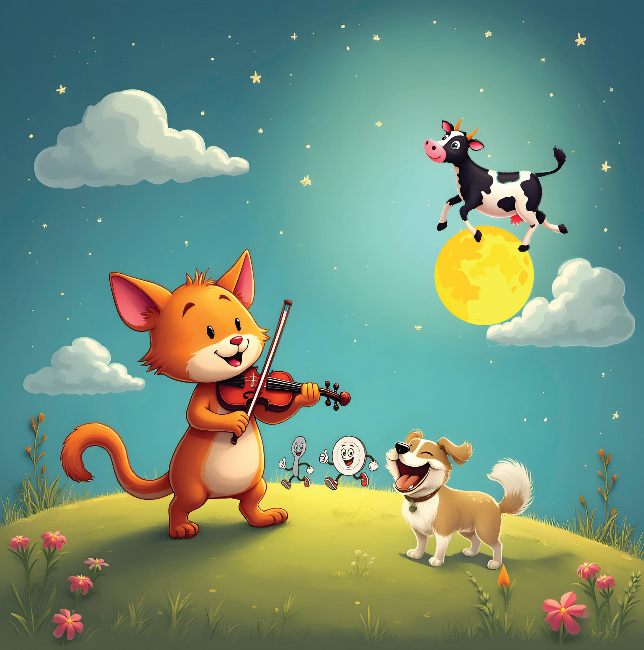 The cat and the fiddle. The cow jumped over the moon. The little dog laughed To see such fun. And the dish ran away with the spoon.