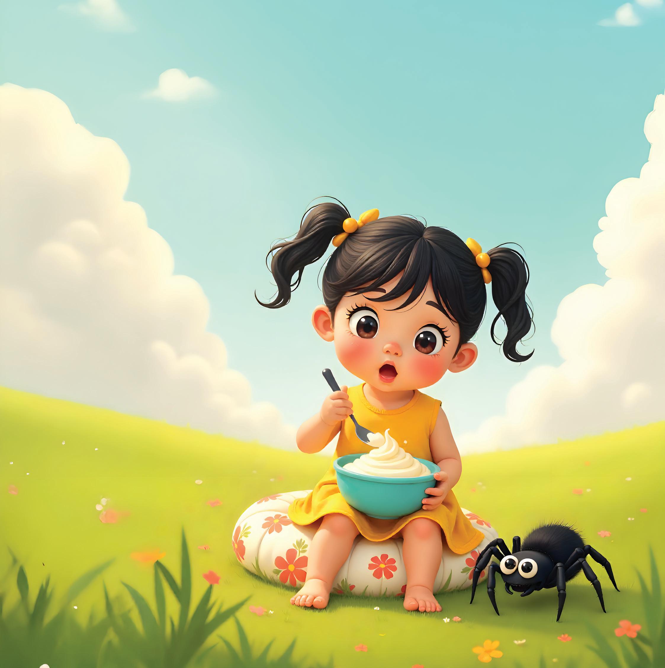 There came a big spider, Who sat down beside her And frightened Miss Muffet away.