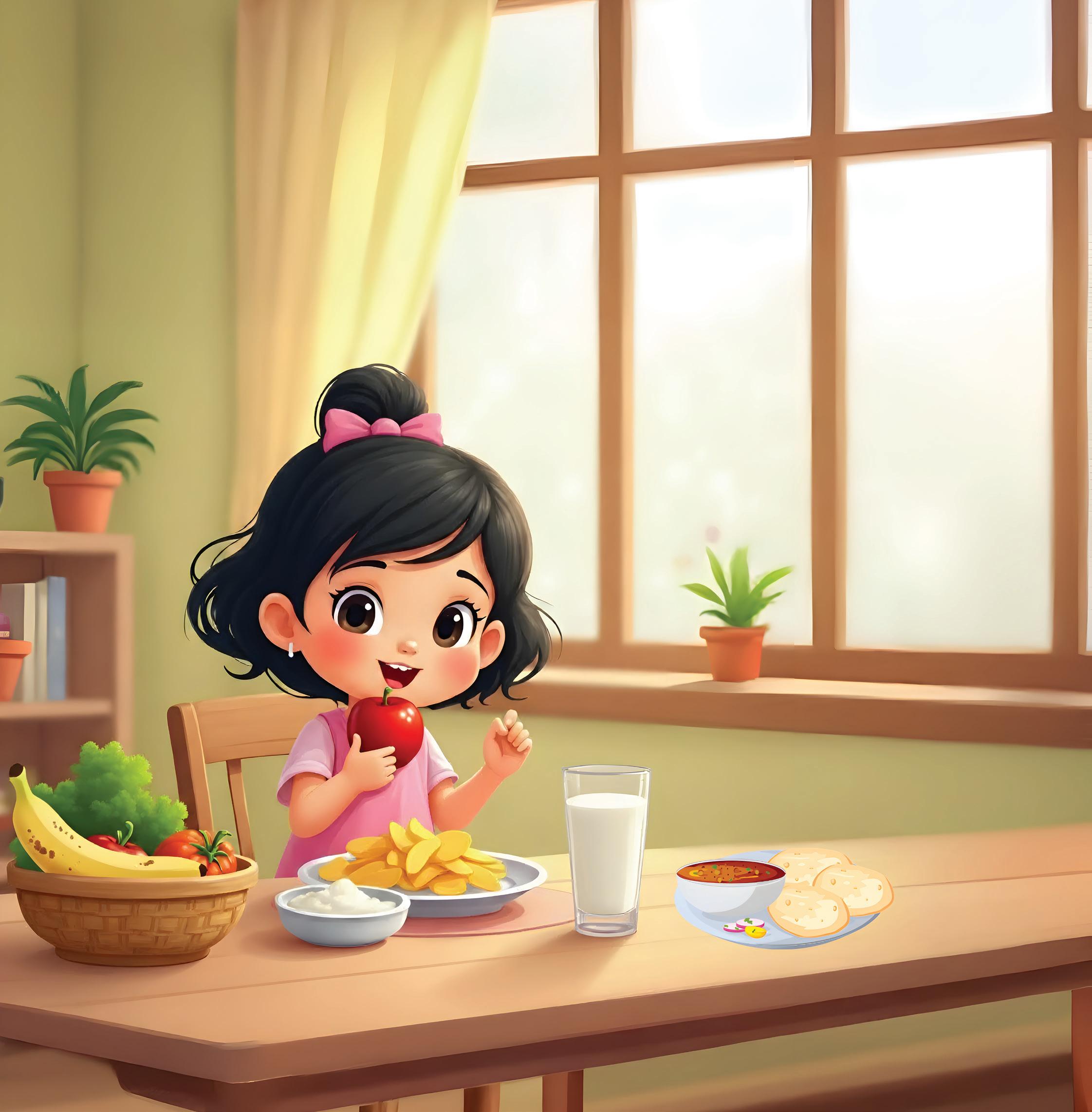 Chapati, rice, and pulses bright, Give us energy, day and night.